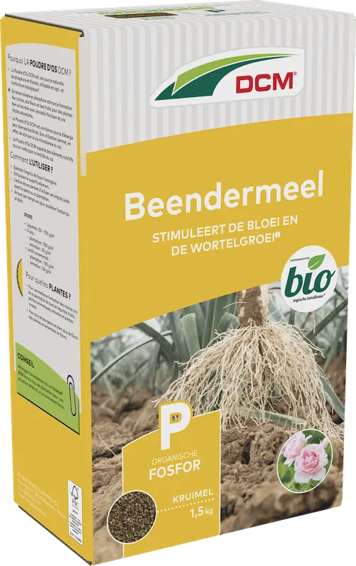 Het hoge fosforgehalte bevordert de wortel-, bloem- en vruchtvorming en zorgt voor een rijke bloei en oogst. Zowel voor sierplanten zoals rozen als voor groenten en fruit. Toepasbaar in de biotuin.
