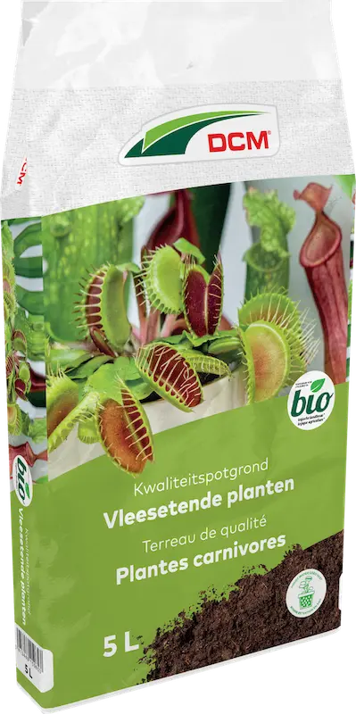 DCM DCM potgrond Vleesetende Planten is een uitmuntende DCM potgrond met hoogkwalitatieve grondstoffen, ideaal voor het in- en verpotten van alle soorten vleesetende planten zoals venusvliegenvanger, bekerplant, trompetbekerplant en zonnedauw. Vleesetende planten komen van nature voor op voedingsarme bodems en hebben dus niet veel voeding nodig. De nodige voedingsstoffen worden verkregen door insecten te vangen. Daarom is deze kwaliteitsDCM potgrond onbemest. Het gebruikte hoogwaardige witveen zorgt ervoor dat voldoende water kan worden vastgehouden. De extra toegevoegde kokosvezel vergemakkelijkt de herbevochtiging van de DCM potgrond.