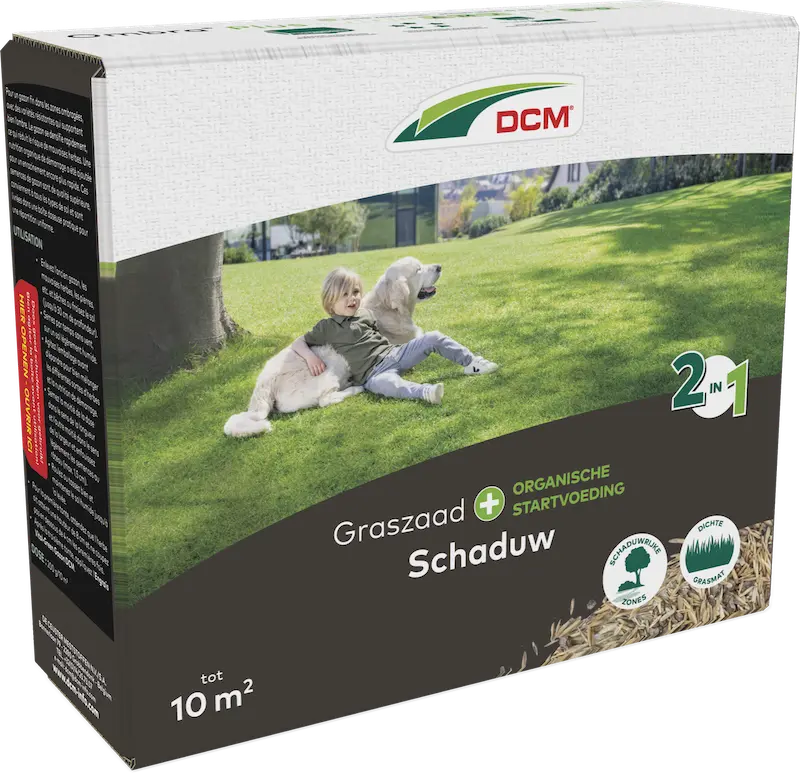 DCM Graszaad 2-in-1 Schaduw is een professionele kwaliteit graszaad met organische startvoeding. Het graszaad is geschikt voor nieuwe inzaai en reparatie van het gazon op schaduwrijke plekken. Het geeft een fijnbladig gazon met sterke grassoorten die goed schaduw verdragen. De grasmat groeit goed dicht, waardoor onkruiden minder kans maken. Er is extra organische startvoeding toegevoegd voor een nog snellere inworteling. Het graszaad is van topkwaliteit, geschikt voor elke grondsoort en zit in een handige strooidoos, voor een gelijkmatige verdeling. Dit graszaadmengsel is ook wel bekend onder de naam DCM Ombra® Plus. Dosering 200 gram per 10 m².