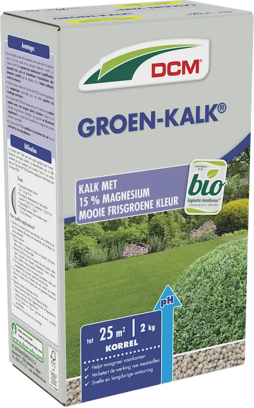 DCM Groen-DCM kalk, meel en perliet® gaat grondverzuring tegen, zorgt voor een betere voedselopname door de planten en verbetert de grondstructuur. De DCM kalk, meel en perliet bevat 15% magnesium wat zorgt voor een mooie frisgroene kleur. Behalve voor het gazon is DCM Groen-DCM kalk, meel en perliet® ook geschikt voor het beDCM kalk, meel en perlieten van de siertuin. Toepasbaar in de biotuin.