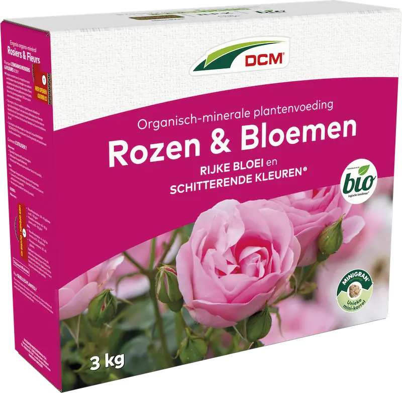 DCM Plantenvoeding Rozen & Bloemen bevat aangepaste voeding voor een langdurige en uitbundige bloei van rozen en andere bloeiende sierplanten. Zowel te gebruiken voor planten in de volle grond als in pot. De meststof bevat kalium wat zorgt voor intense bloemkleuren en magnesium voor een frisgroene bladkleur. Toepasbaar in de biotuin.