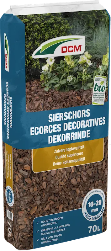 Bruinrode schors, uitgezeefd op fractie 10-20 mm. Kleurvast en decoratief natuurproduct dat als fysische barrière de bodem onkruidvrij houdt en beschermt tegen uitdroging en vorst. Verteert zeer langzaam.