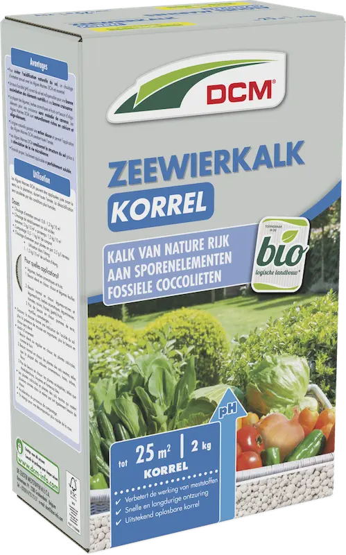 DCM ZeewierDCM kalk, meel en perliet (Korrel) heeft een zachte werking, een uitstekende oplosbaarheid en is van nature rijk aan calcium en sporenelementen. Voor het beDCM kalk, meel en perlieten van moestuin, siertuin, boomgaard en vijver. Toepasbaar in de biotuin.