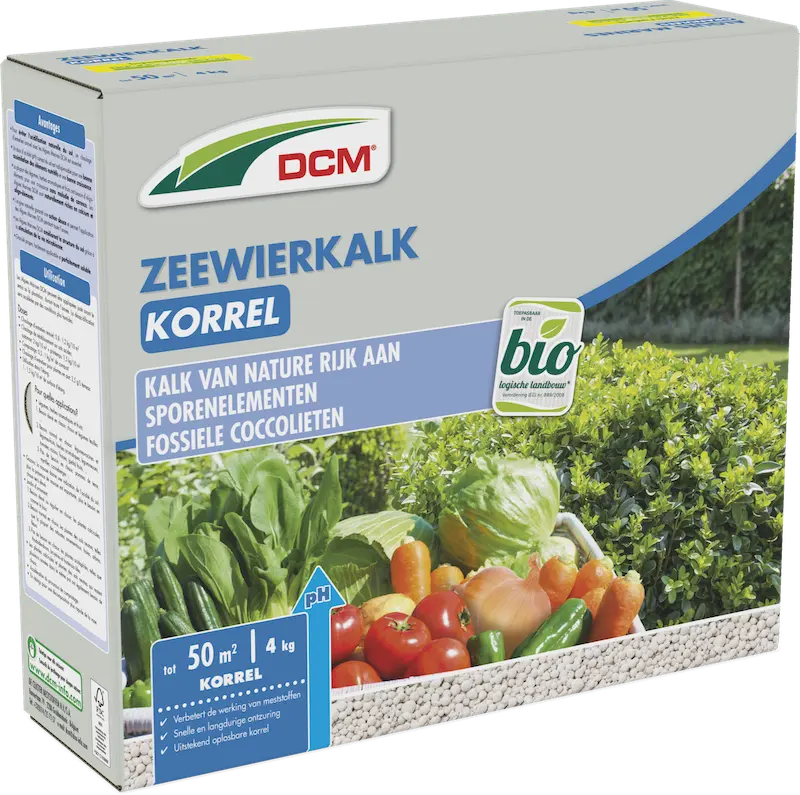 DCM ZeewierDCM kalk, meel en perliet (Korrel) heeft een zachte werking, een uitstekende oplosbaarheid en is van nature rijk aan calcium en sporenelementen. Voor het beDCM kalk, meel en perlieten van moestuin, siertuin, boomgaard en vijver. Toepasbaar in de biotuin.